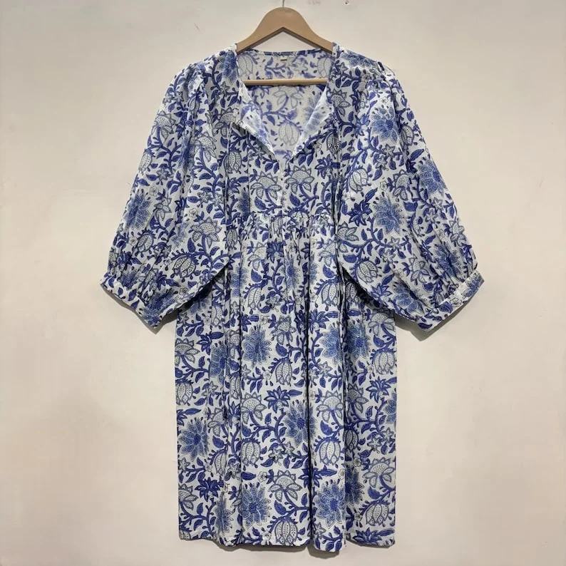 Crafted from 100% soft cotton with traditional hand block printing, this beautifully designed dress features a full lining for extra comfort and durability. Its breathable fabric and elegant style make it a perfect gift for your loved ones, ideal for both casual days and special occasions.