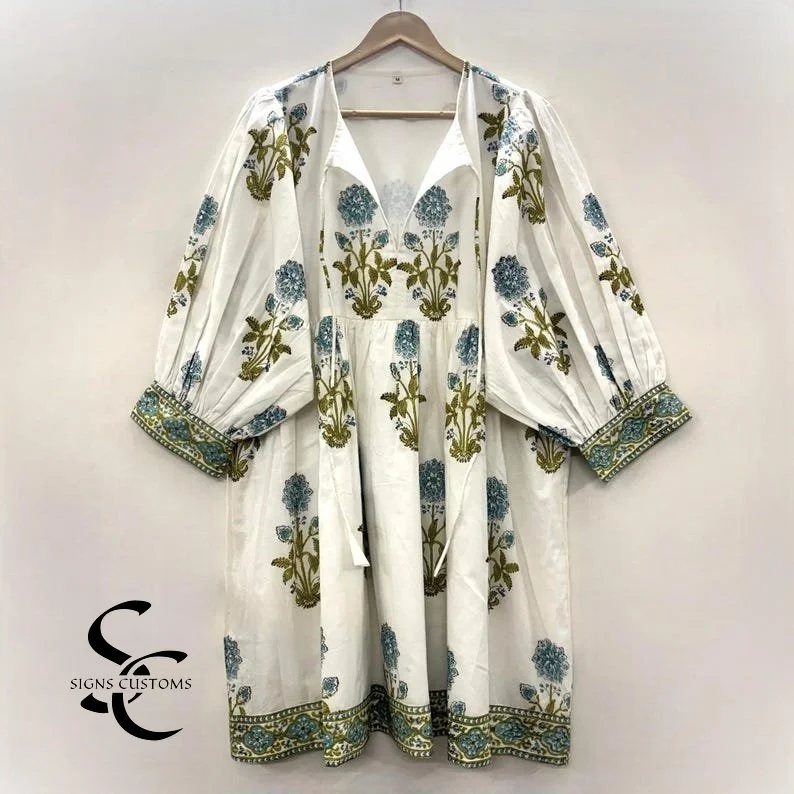 Crafted from 100% soft cotton with traditional hand block printing, this beautifully designed dress features a full lining for extra comfort and durability. Its breathable fabric and elegant style make it a perfect gift for your loved ones, ideal for both casual days and special occasions.