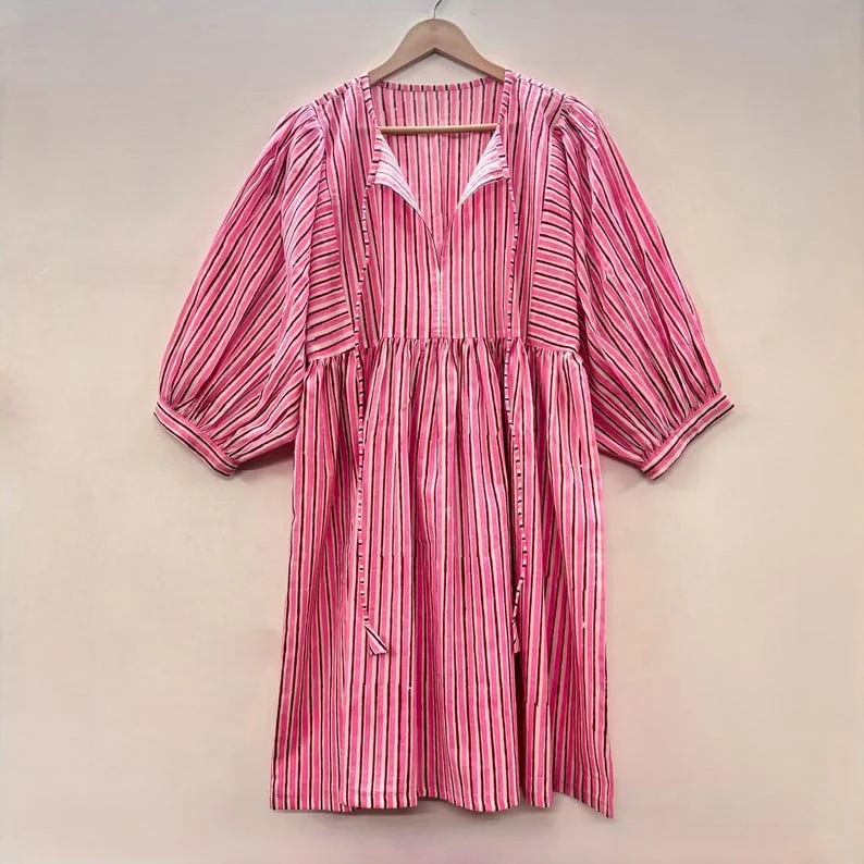 Crafted from 100% soft cotton with traditional hand block printing, this beautifully designed dress features a full lining for extra comfort and durability. Its breathable fabric and elegant style make it a perfect gift for your loved ones, ideal for both casual days and special occasions.