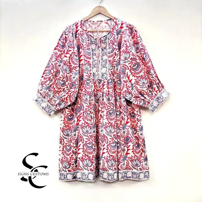 Crafted from 100% soft cotton with traditional hand block printing, this beautifully designed dress features a full lining for extra comfort and durability. Its breathable fabric and elegant style make it a perfect gift for your loved ones, ideal for both casual days and special occasions.
