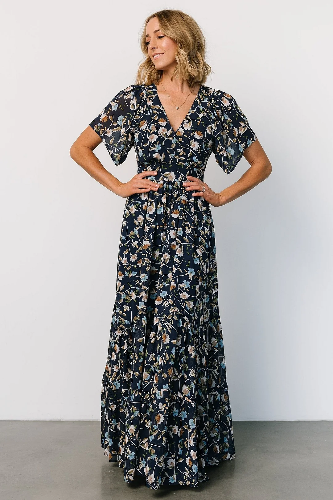 Floral Maxi Dress - Dark Blue Floral