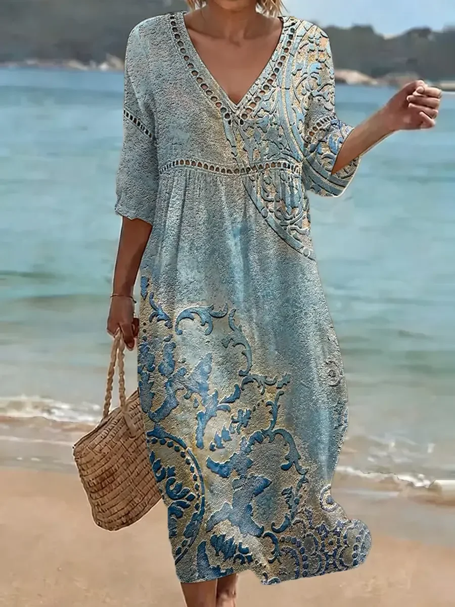 Women's Retro Floral Pattern Art Print Casual Stylish Cotton Linen Dress