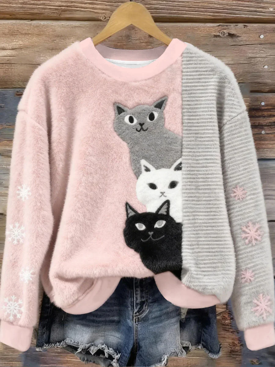Women's Cute Cat Flannel Hoodie