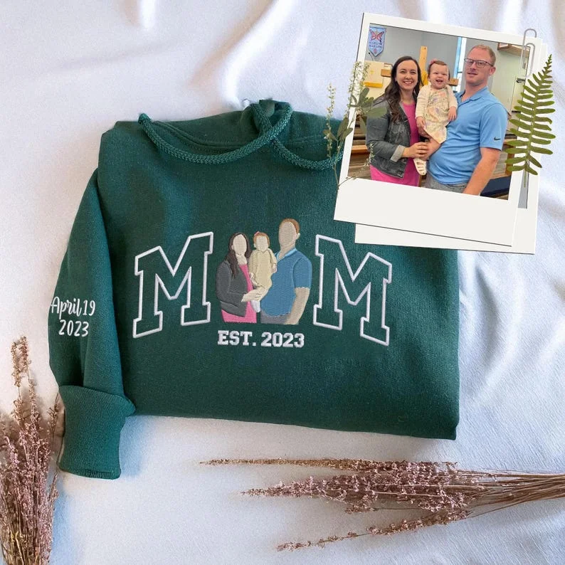 Custom Embroidered Sweatshirt Hoodie Mama and Kids Portrait with Photo - Mother's Day Gifts