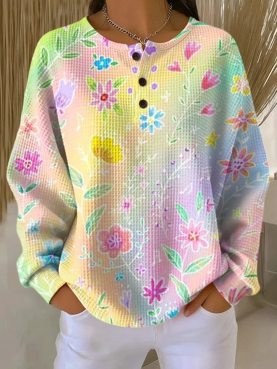 Women's Beautiful Colorful Floral Painting Art Print Casual Cotton Shirt