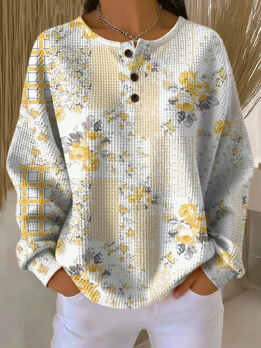 Women's Multicolor Flowers Pattern Art Print Casual Cotton Shirt
