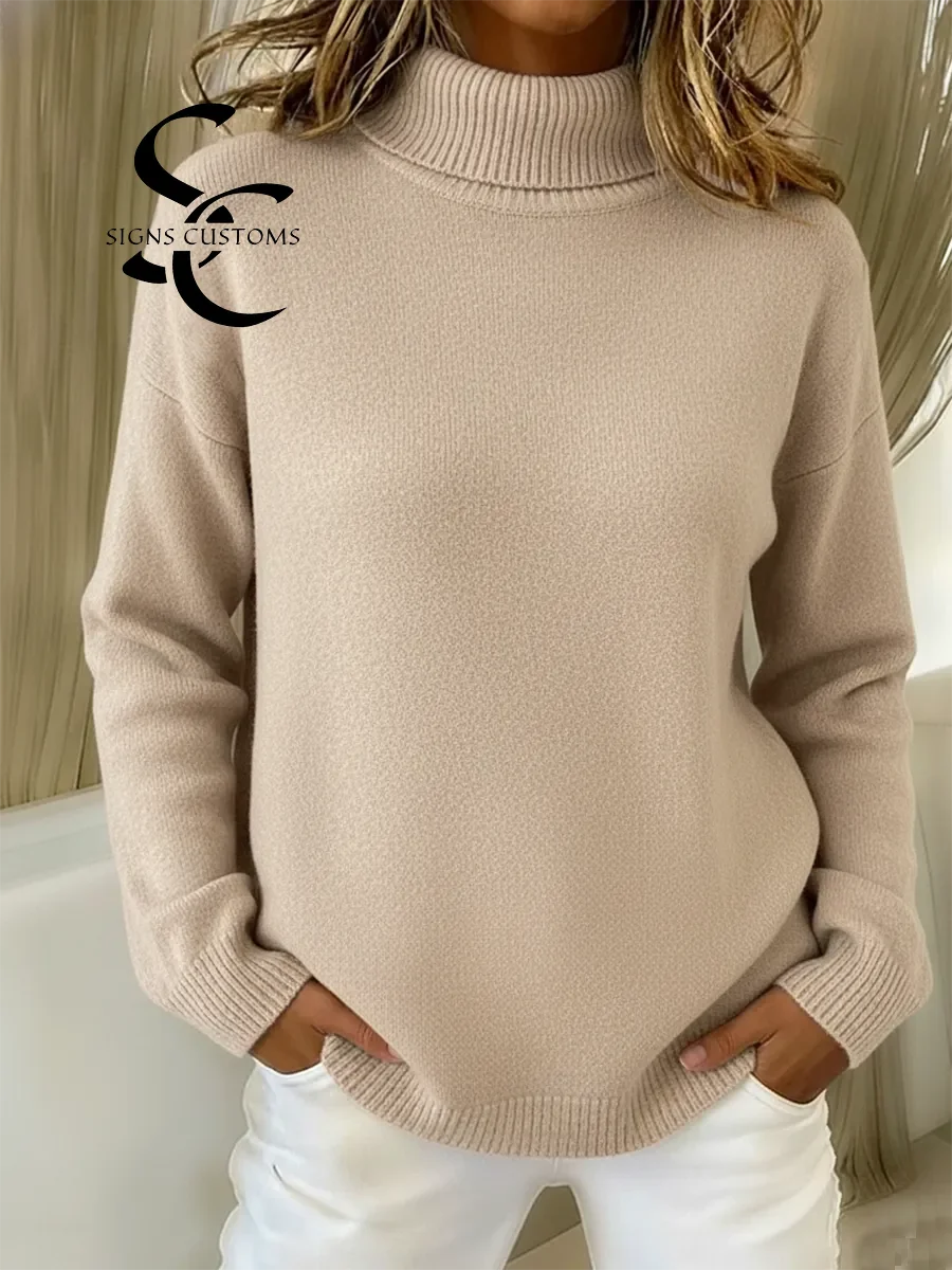 Casual Solid Color Loose Solid Color Turtleneck Sweater Top