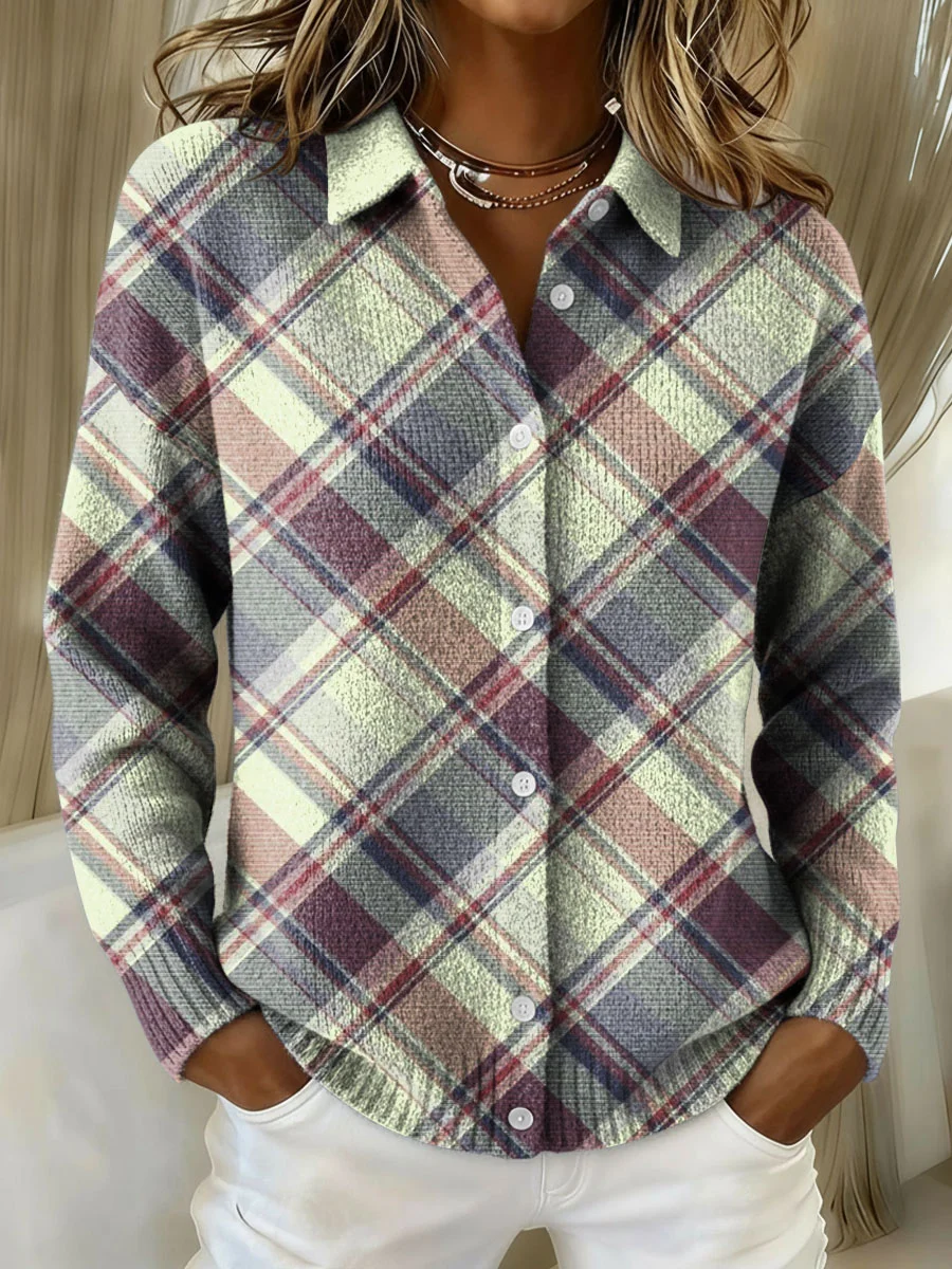 Classic plaid decorative pattern Women's Casual Shirt Collar Sweater