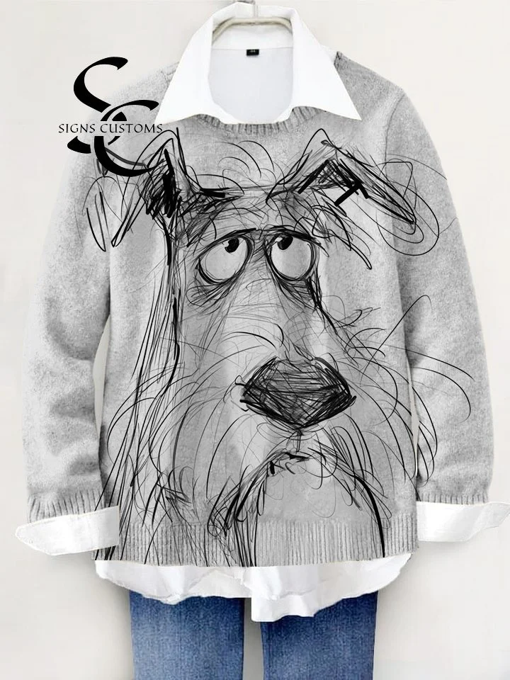 Hand-Painted Knit Pullover Sweater Featuring Adorable Dogs