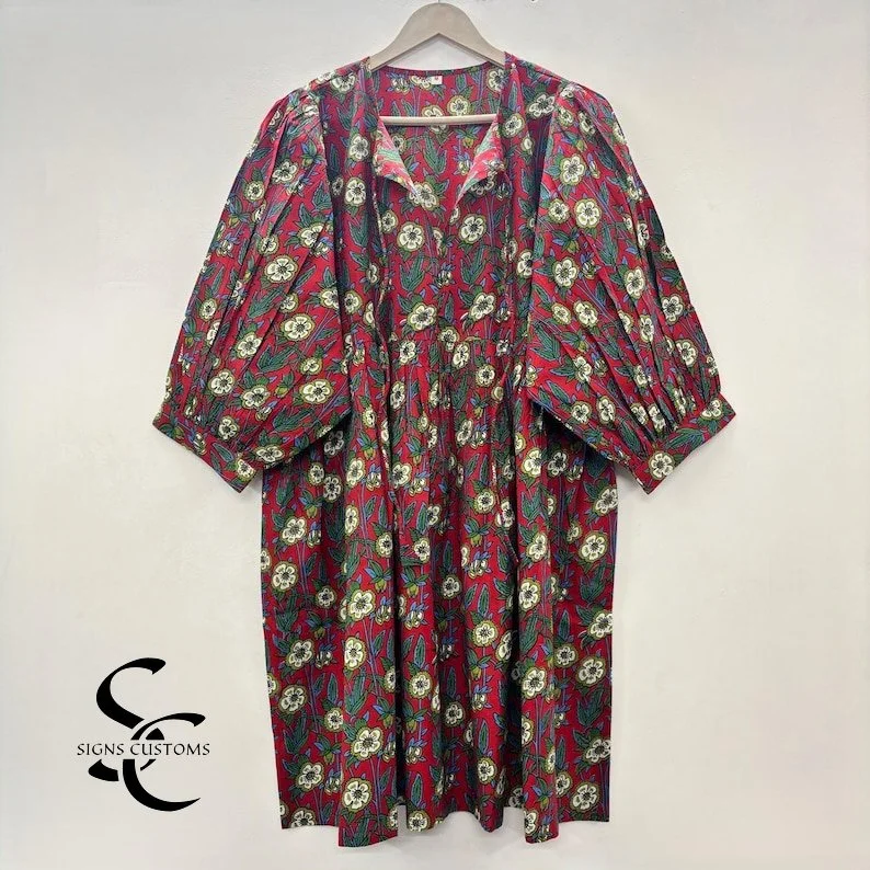 Crafted from 100% soft cotton with traditional hand block printing, this beautifully designed dress features a full lining for extra comfort and durability. Its breathable fabric and elegant style make it a perfect gift for your loved ones, ideal for both casual days and special occasions.