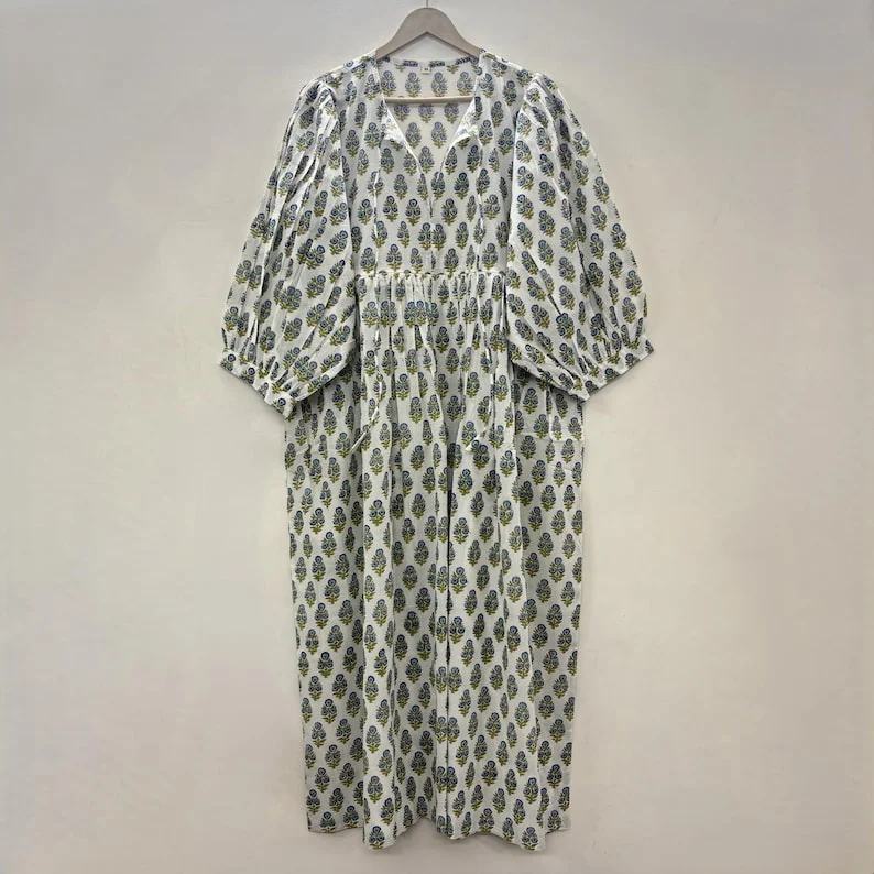 Crafted from 100% soft cotton with traditional hand block printing, this beautifully designed dress features a full lining for extra comfort and durability. Its breathable fabric and elegant style make it a perfect gift for your loved ones, ideal for both casual days and special occasions.