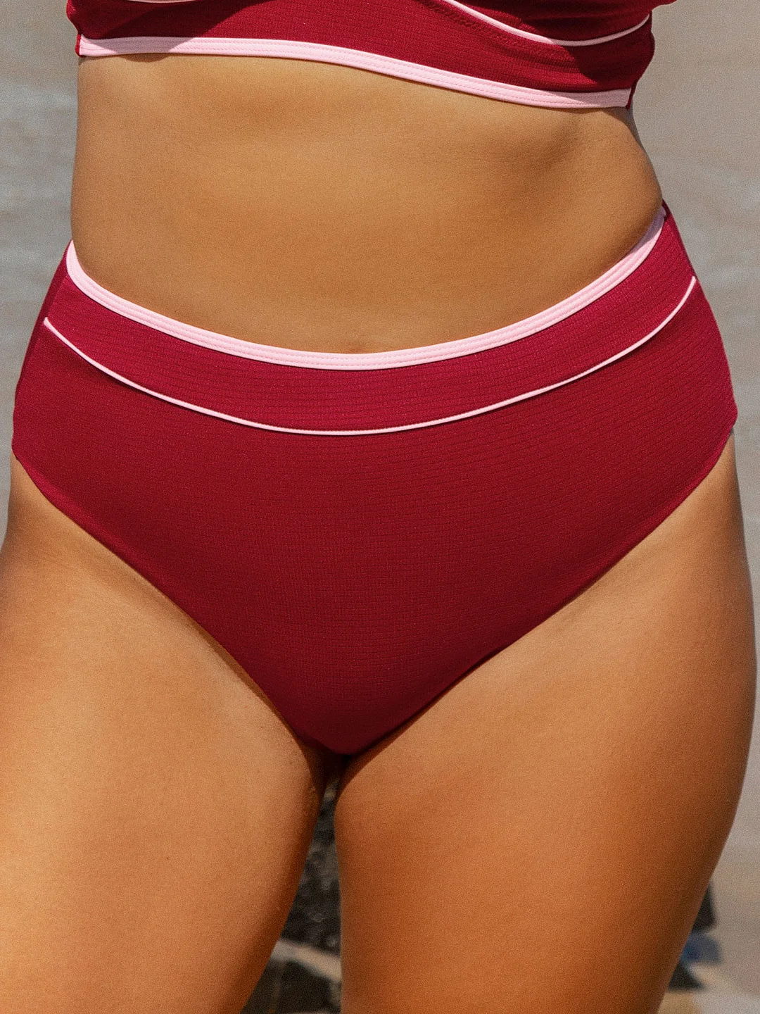Red Contrast Plus Size Bikini Bottom