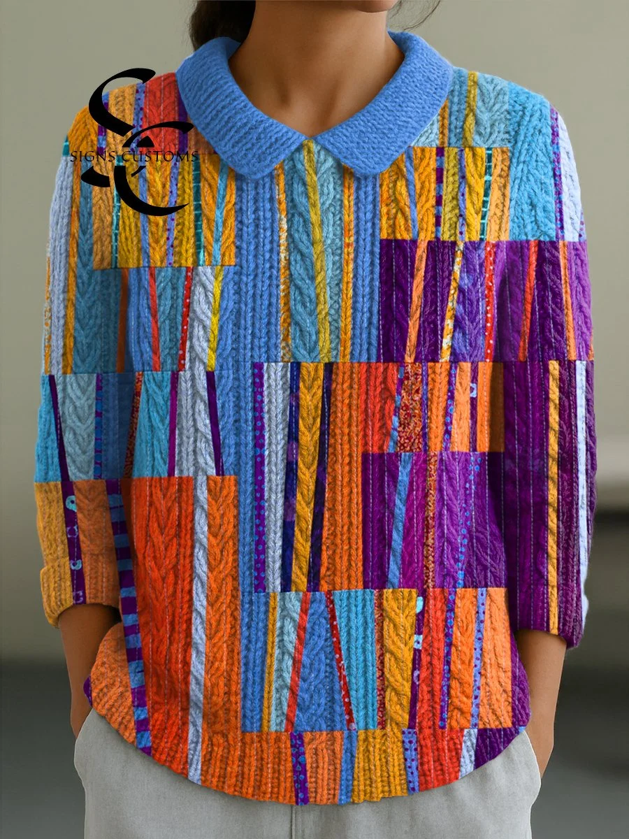 Women's Casual Peter Pan Collar 3/4 Sleeve Sweater