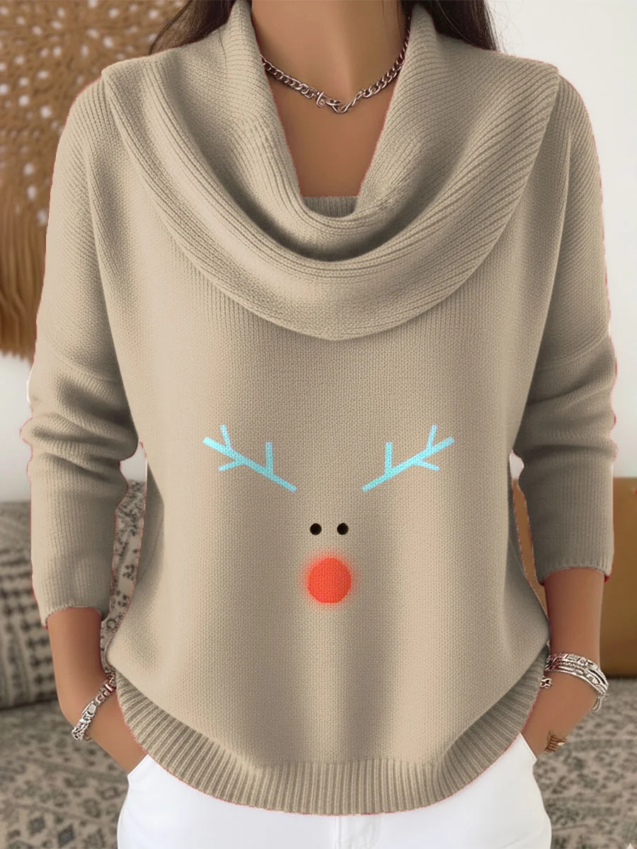Women's Christmas Deer Pattern Art Print Cowl Neck Sweater