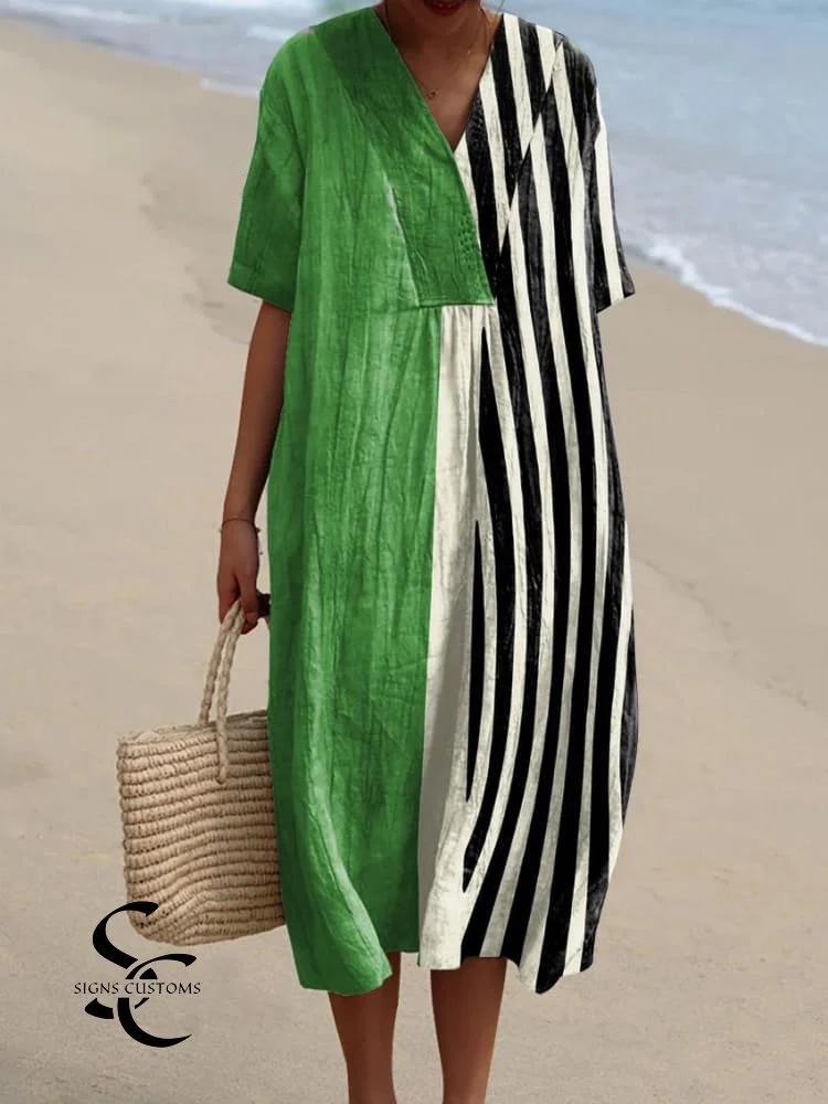 Women's Retro Minimalist Abstract Art Print Flowy Dress