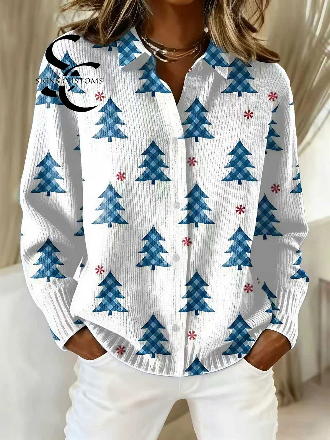 Women's Vintage Christmas Tree Art Print Casual Cardigan Sweater