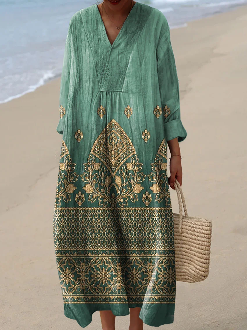 Women's Vintage Ethnic Floral Art Print Cotton Dress
