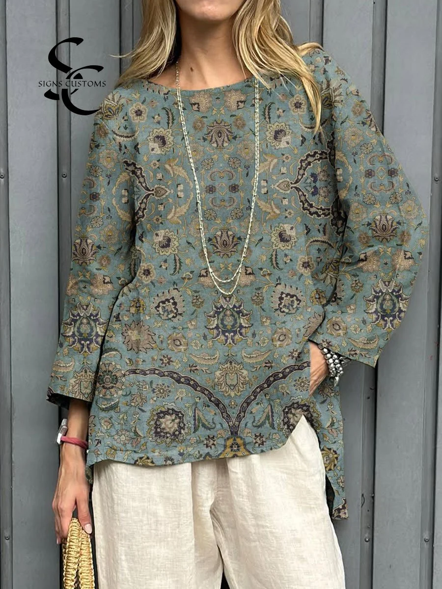 Women's Vintage Ethnic Pattern Art Print Casual Cotton And Linen Shirt