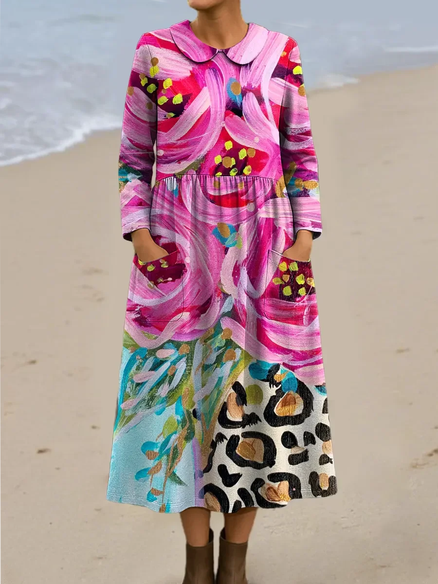 Women's Vintage Floral Art Print Casual Cotton Dress